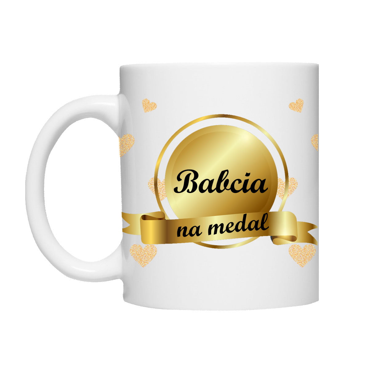 Kubek biały, ceramiczny drukowany metodą sublimacji.