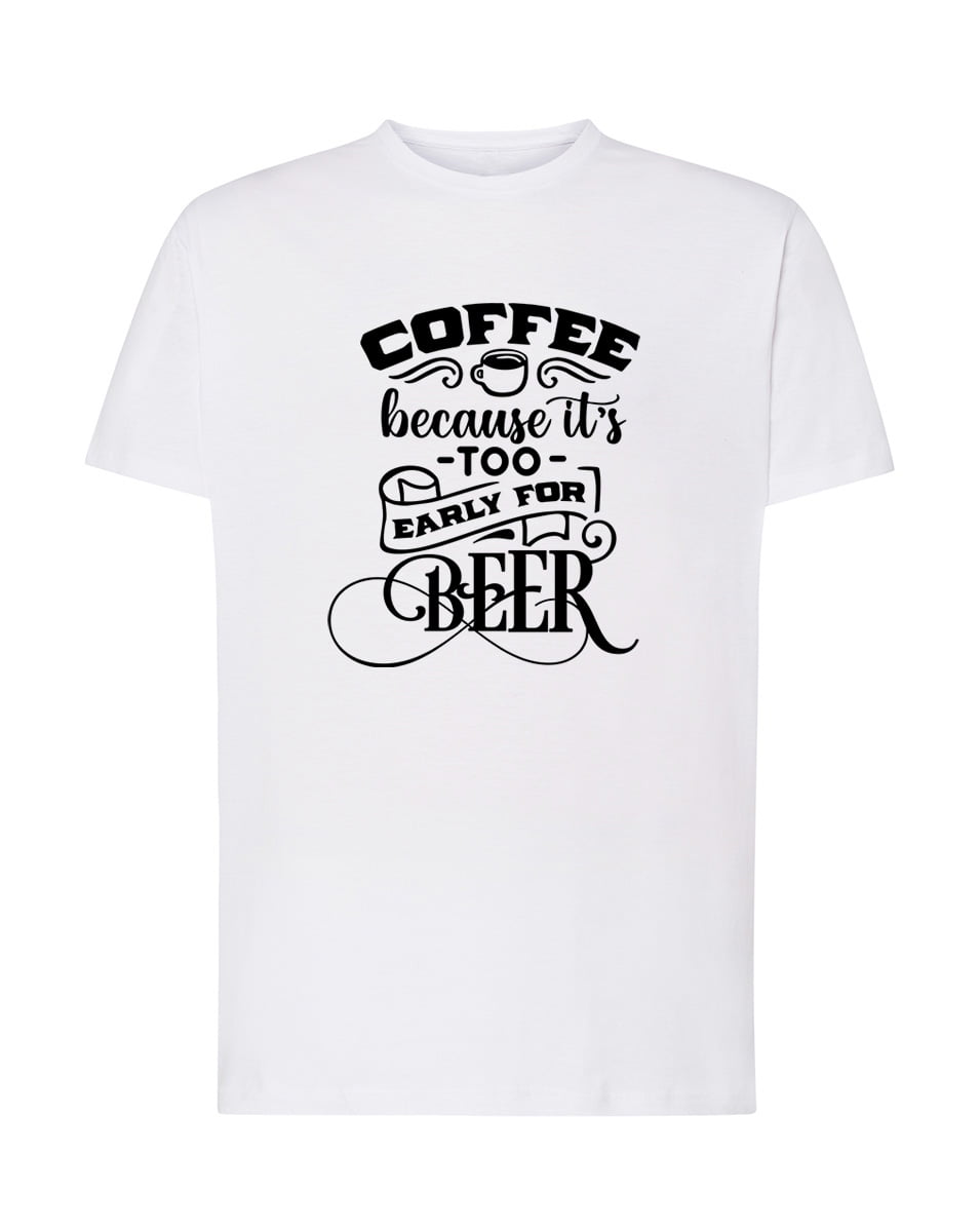 Coffee because it’s too early for beer. Koszulka oraz nadruk wykonane w najwyższej jakości. Dostępna w 3 klasycznych kolorach: białym, szarym i czarnym. Idealna na prezent.