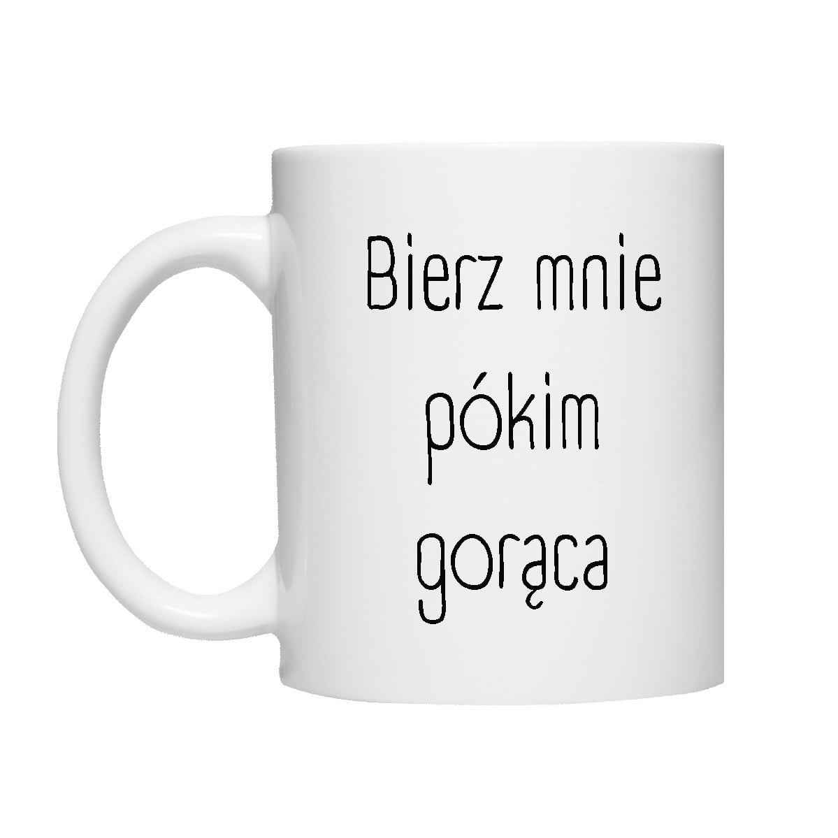 Kubek biały, ceramiczny drukowany metodą sublimacji.