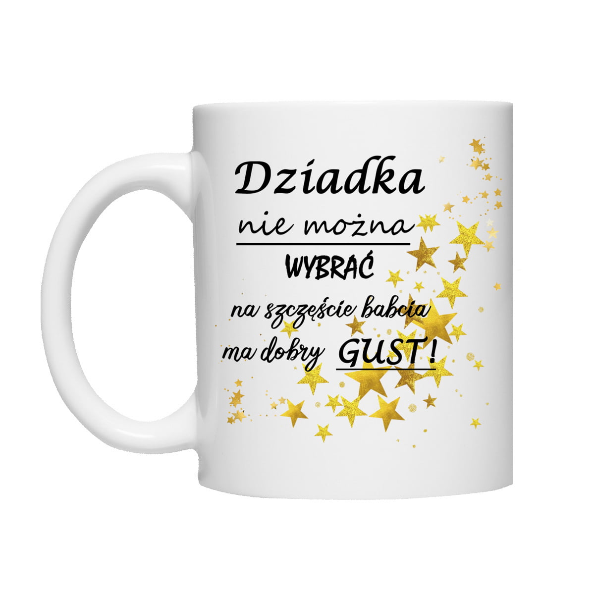 Kubek biały, ceramiczny drukowany metodą sublimacji.