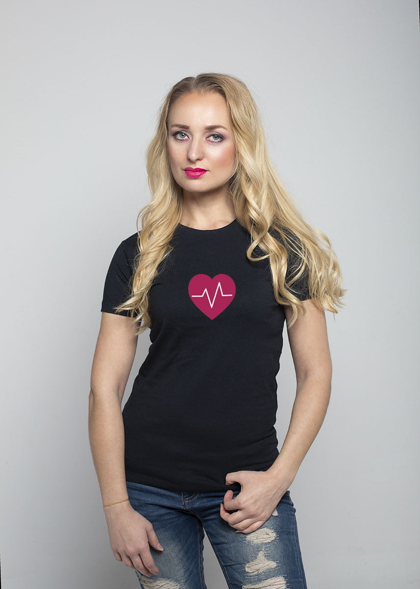 Koszulka Heart. Koszulka oraz nadruk wykonane w najwyższej jakości. Dostępna w 3 klasycznych kolorach: białym, szarym i czarnym. Idealna na prezent. Spraw sobie damską koszulkę z napisem!