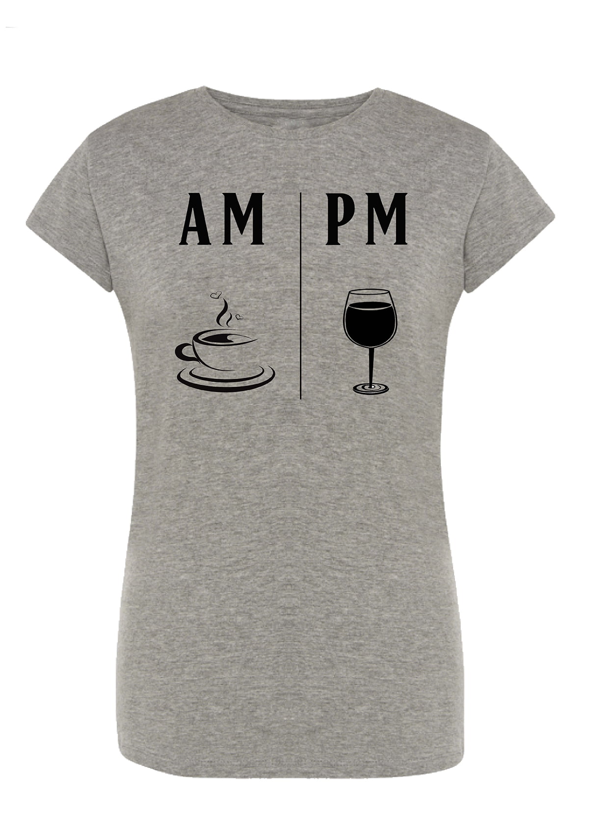 Koszulka am pm. Koszulka oraz nadruk wykonane w najwyższej jakości. Dostępna w 3 klasycznych kolorach: białym, szarym i czarnym. Idealna na prezent. Spraw sobie damską koszulkę z napisem!