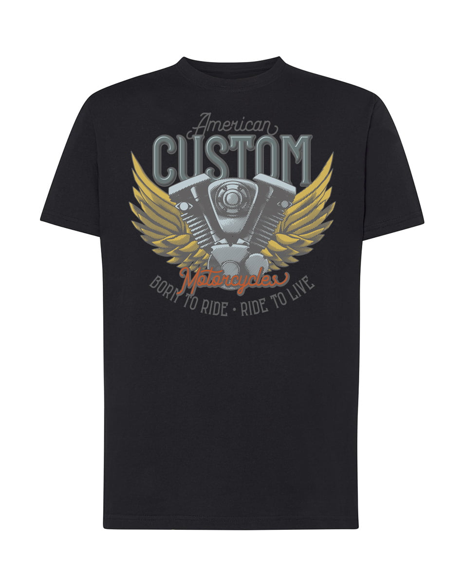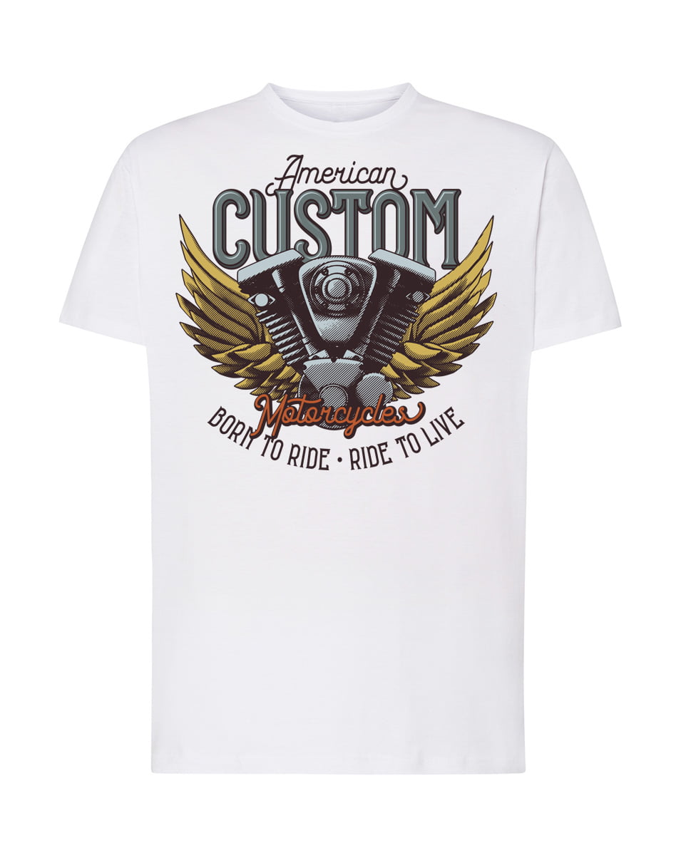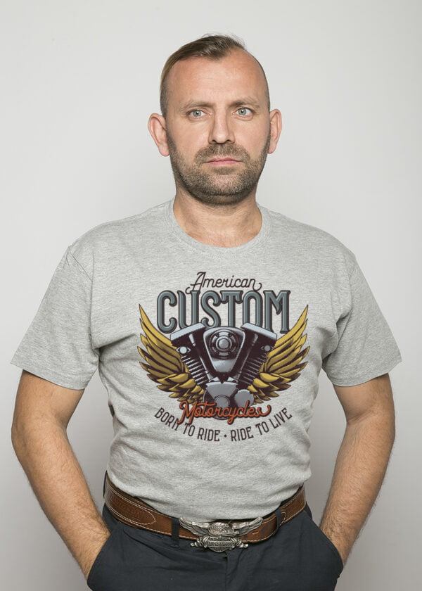 Koszulka Born to ride. Koszulka oraz nadruk wykonane w najwyższej jakości. Dostępna w 3 klasycznych kolorach: białym, szarym i czarnym. Idealna na prezent.