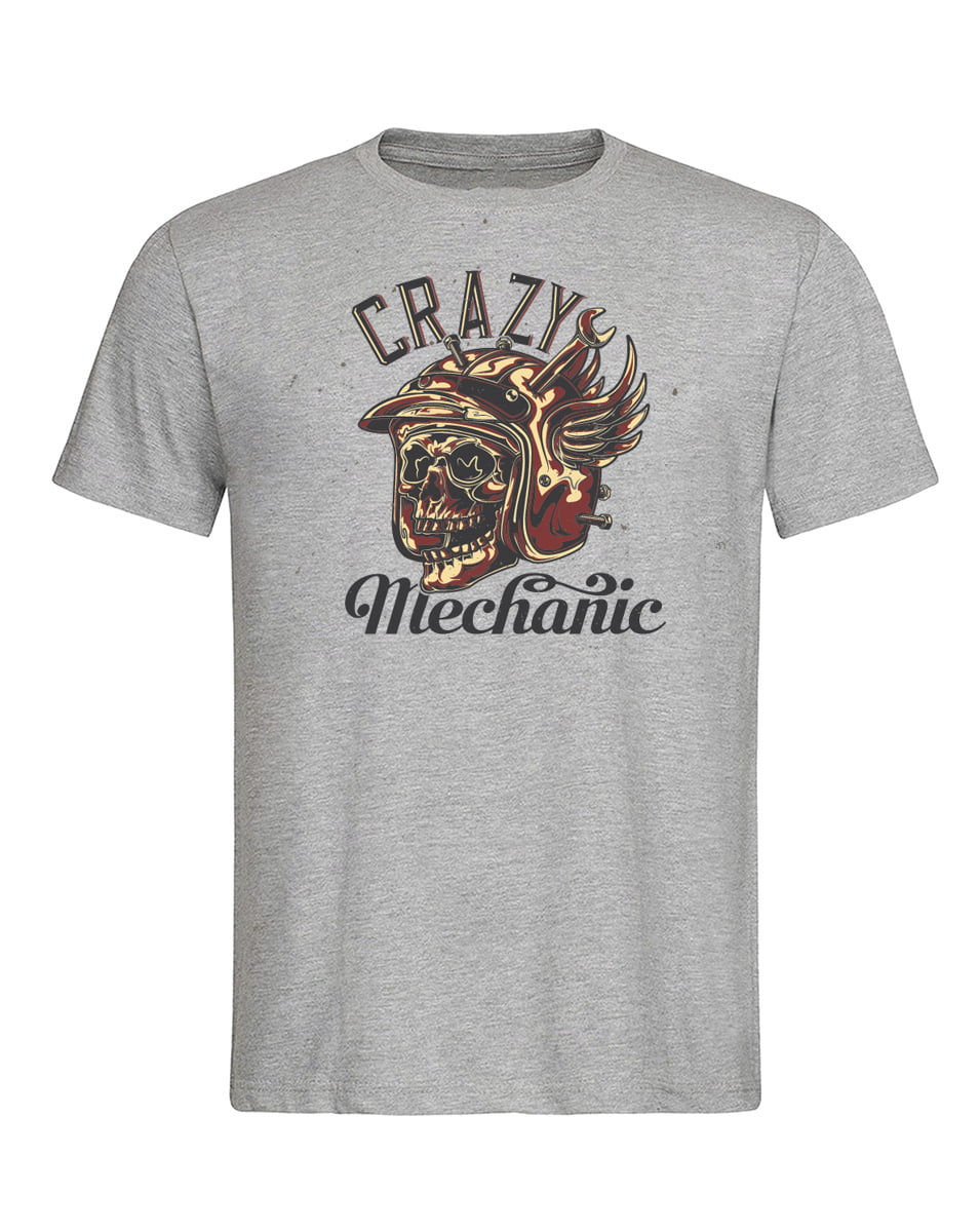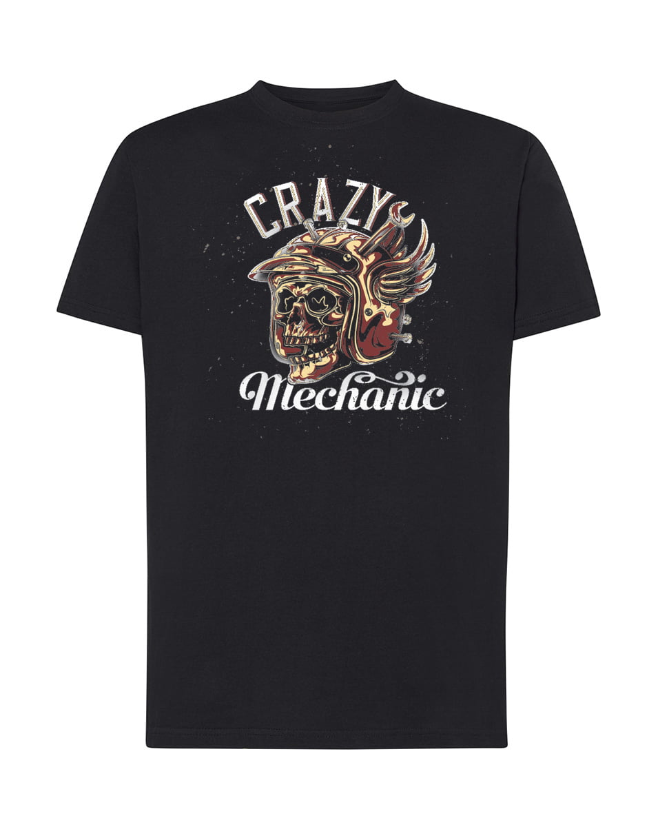 Koszulka Crazy Mechanic. Koszulka oraz nadruk wykonane w najwyższej jakości. Dostępna w 3 klasycznych kolorach: białym, szarym i czarnym. Idealna na prezent.