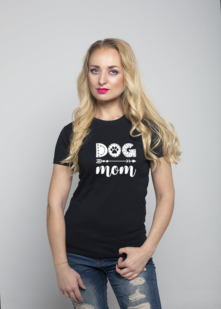 Koszulka Dog mom. Koszulka oraz nadruk wykonane w najwyższej jakości. Dostępna w 3 klasycznych kolorach: białym, szarym i czarnym. Idealna na prezent.