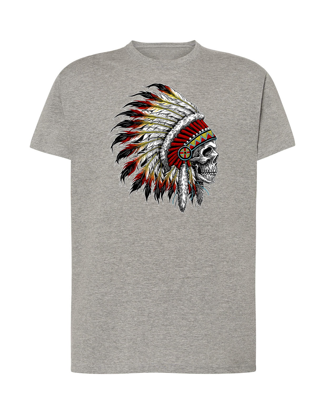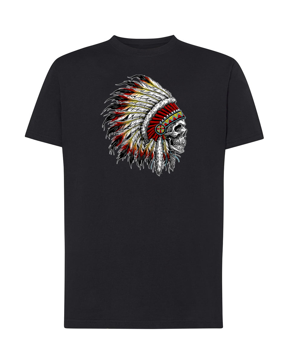 Koszulka indianin w pióropuszu. Koszulka oraz nadruk wykonane w najwyższej jakości. Dostępna w 3 klasycznych kolorach: białym, szarym i czarnym. Idealna na prezent.