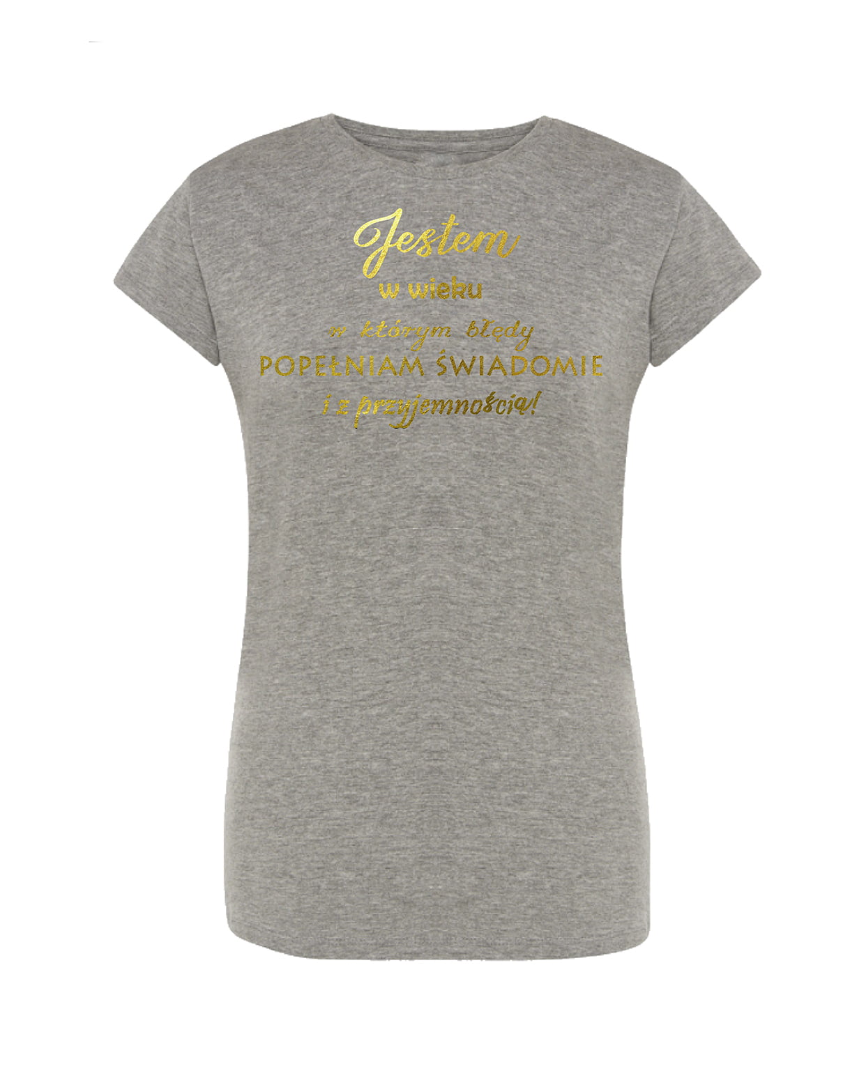 Koszulka jestem w wieku. Koszulka oraz nadruk wykonane w najwyższej jakości. Dostępna w 3 klasycznych kolorach: białym, szarym i czarnym. Idealna na prezent. Spraw sobie damską koszulkę z napisem!