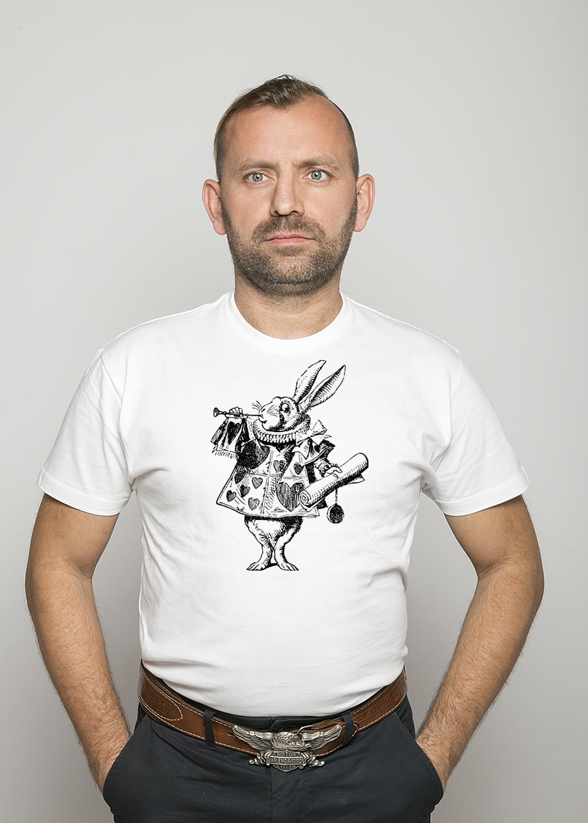 Koszulka Królik. Koszulka oraz nadruk wykonane w najwyższej jakości. Dostępna w 3 klasycznych kolorach: białym, szarym i czarnym. Idealna na prezent.