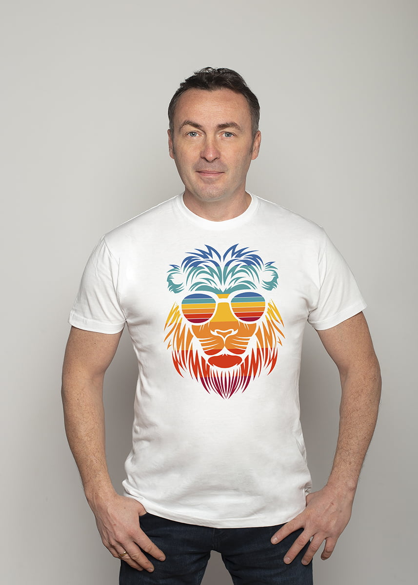 Koszulka lew. Lew, koszulka, prezent, znak zodiaku, kolorowy lew. T-shirt męski premium z krótkim rękawem. Brak bocznych szwów. Podwójne szwy na ramionach. Wzmocniony lycrą ściągacz. Taśma wzmacniająca. 100% bawełna stabilizowana. Koszulka oraz nadruk wykonane w najwyższej jakości. Dostępna w 3 klasycznych kolorach: białym, szarym i czarnym. Idealna na prezent.