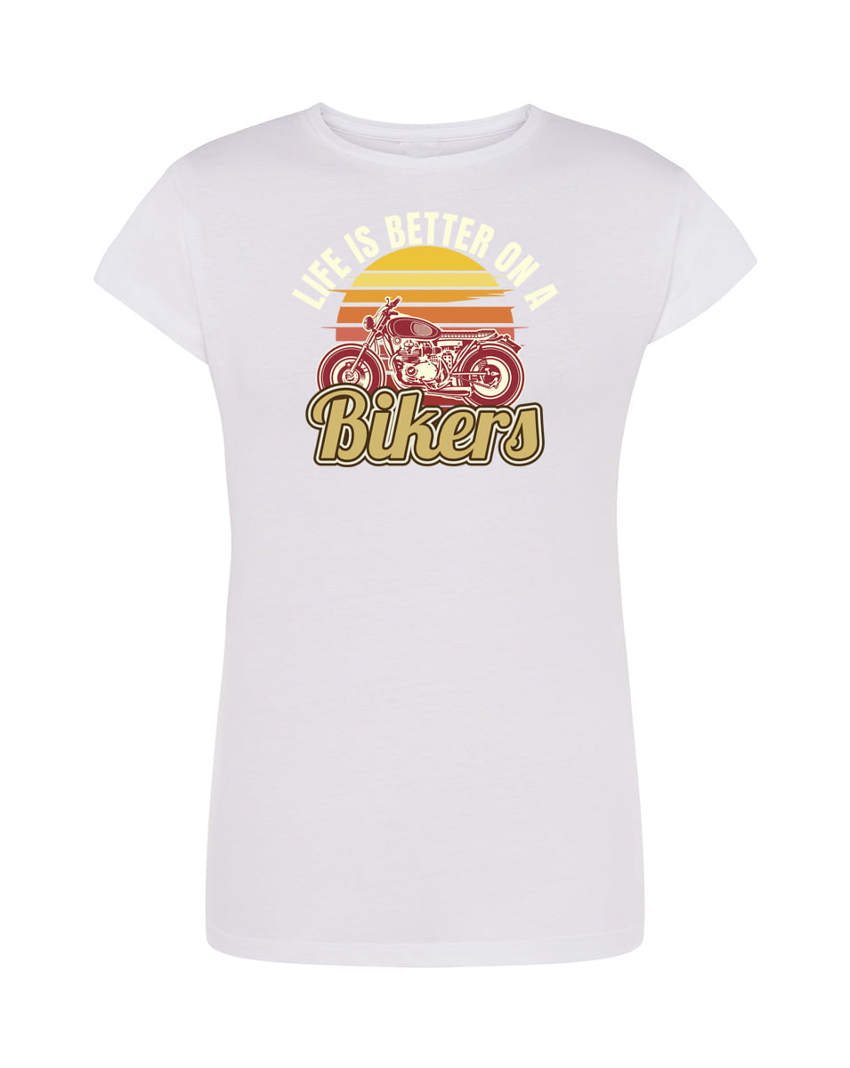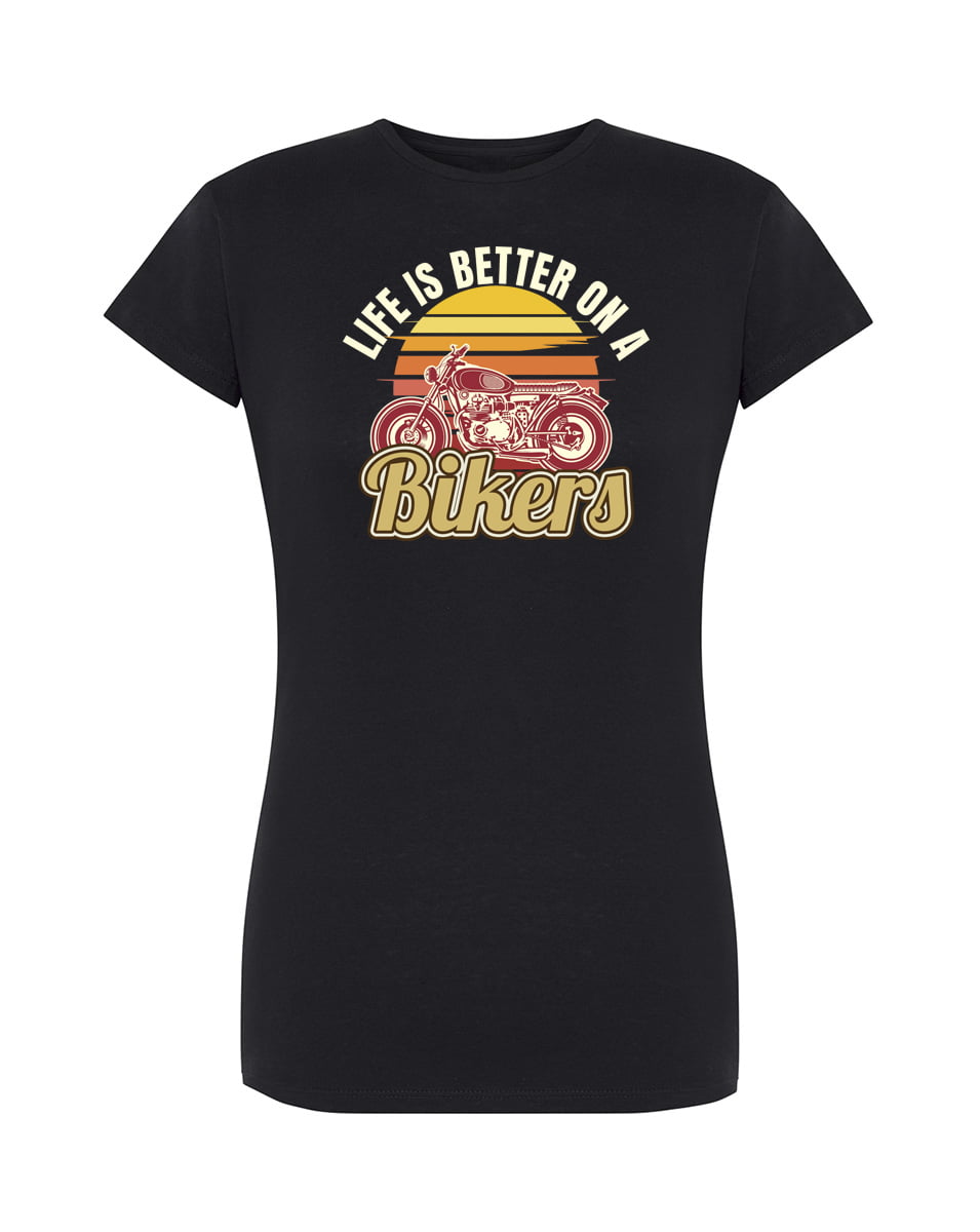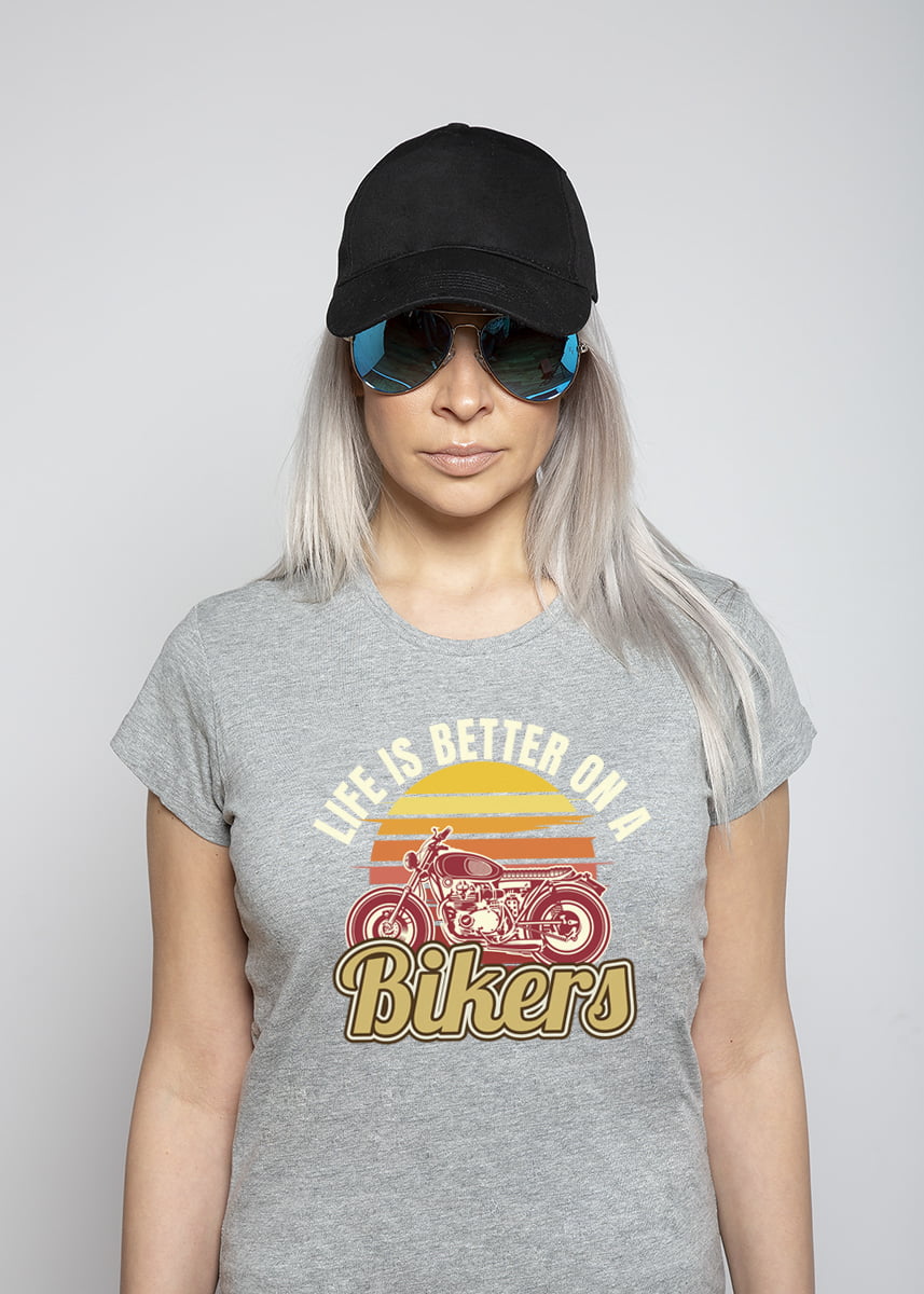 Koszulka life is better on a bikers. Koszulka dla miłośniczek jazdy na motorze. Koszulka oraz nadruk wykonane w najwyższej jakości. Dostępna w 3 klasycznych kolorach: białym, szarym i czarnym. Idealna na prezent. Spraw sobie damską koszulkę z napisem!