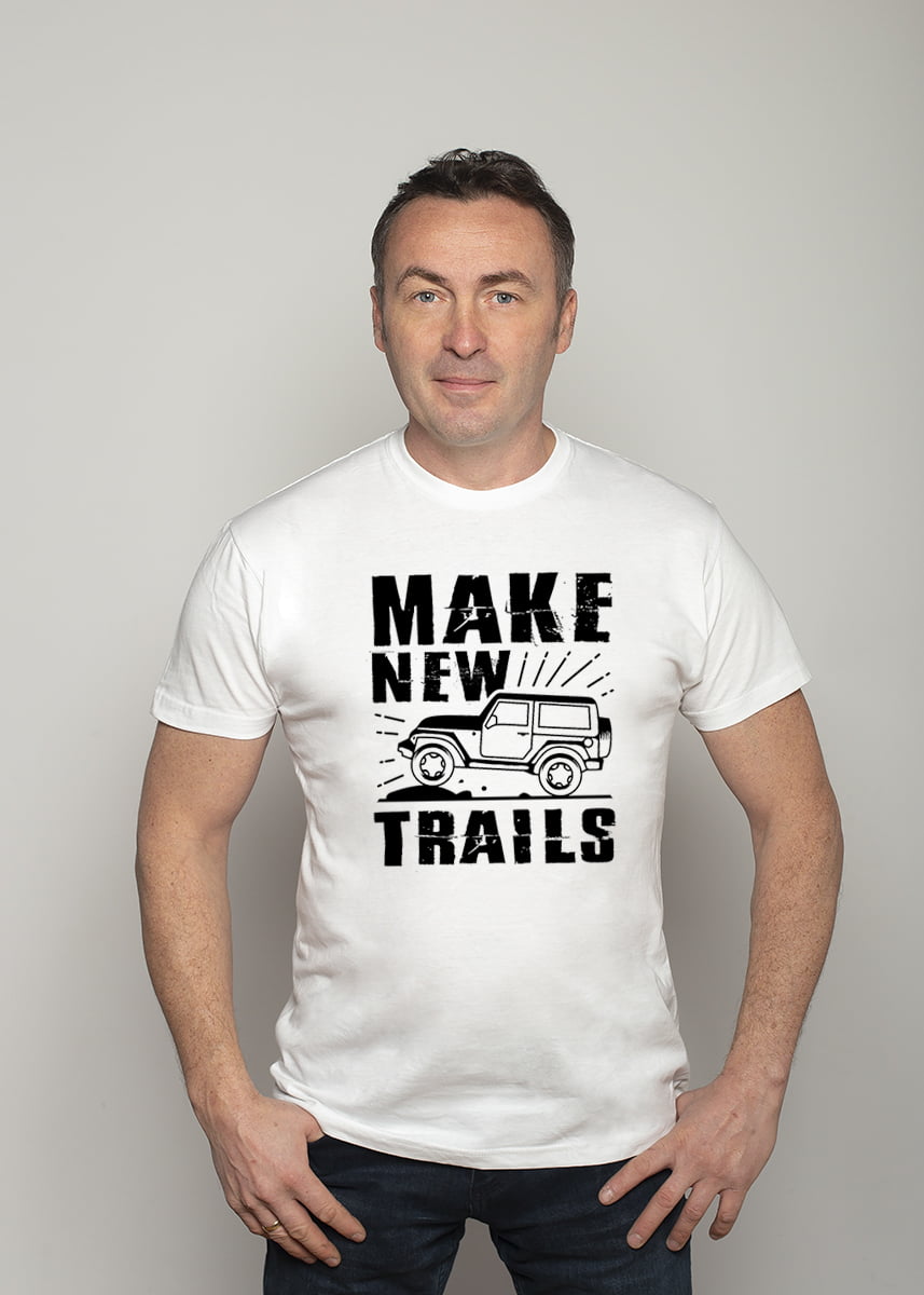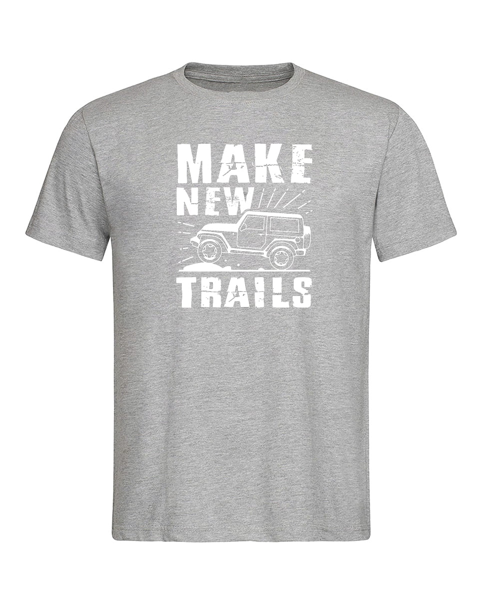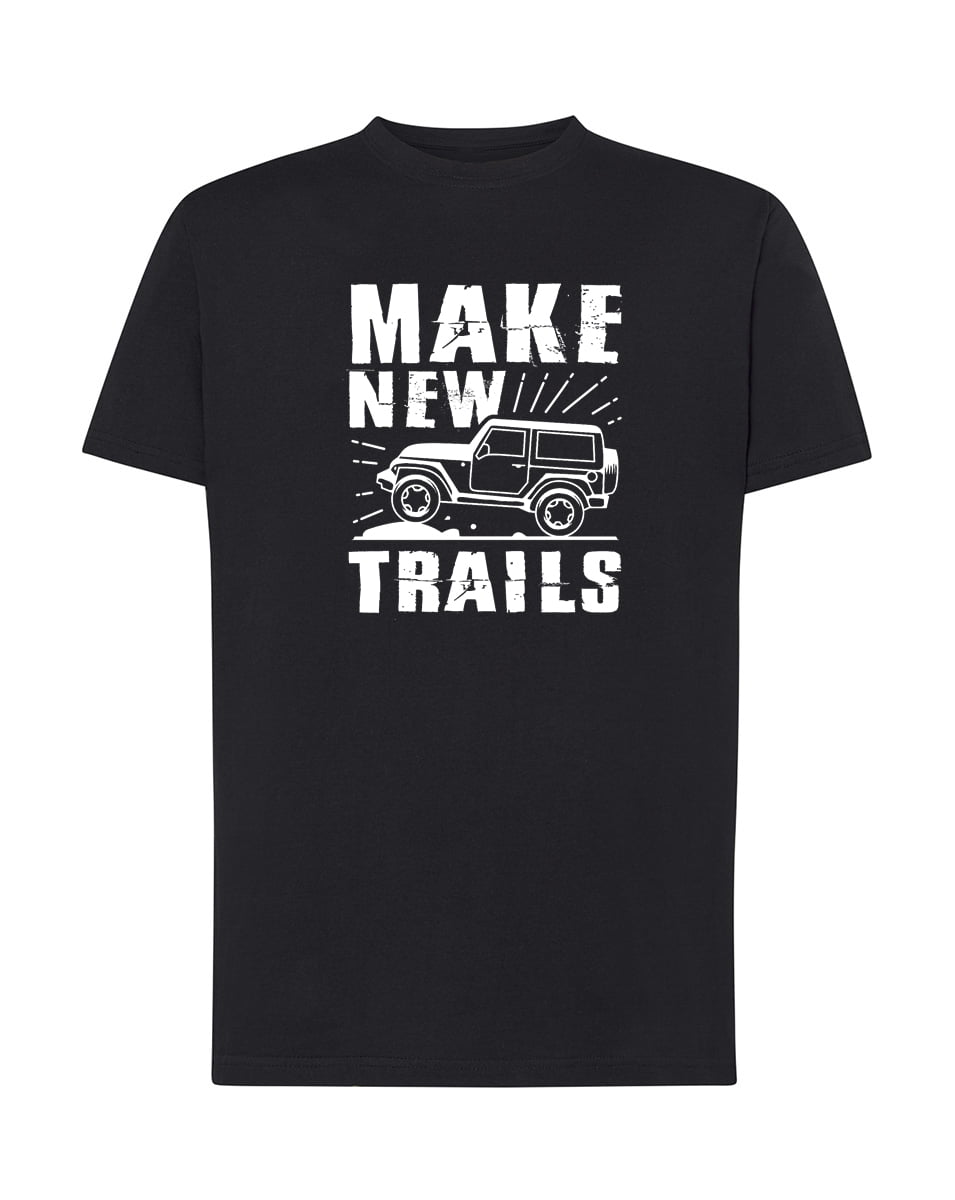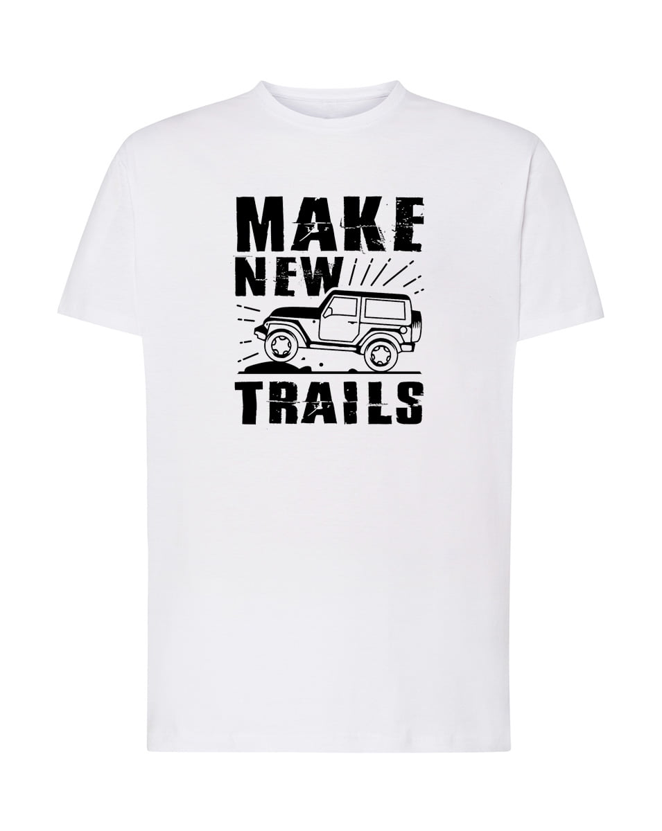 Koszulka Make new trails. Koszulka oraz nadruk wykonane w najwyższej jakości. Dostępna w 3 klasycznych kolorach: białym, szarym i czarnym. Idealna na prezent.