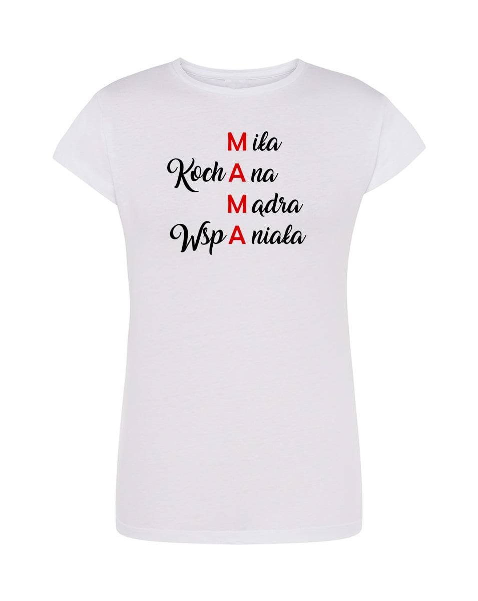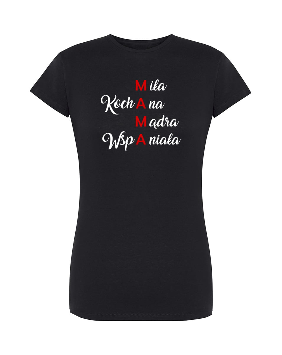 Koszulka Mama. Koszulka oraz nadruk wykonane w najwyższej jakości. Dostępna w 3 klasycznych kolorach: białym, szarym i czarnym. Idealna na prezent.