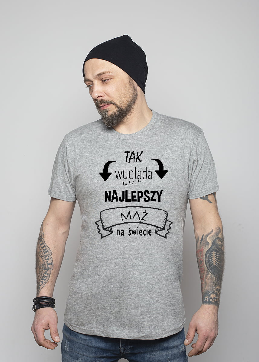 Koszulka Najlepszy mąż. Koszulka oraz nadruk wykonane w najwyższej jakości. Dostępna w 3 klasycznych kolorach: białym, szarym i czarnym. Idealna na prezent.