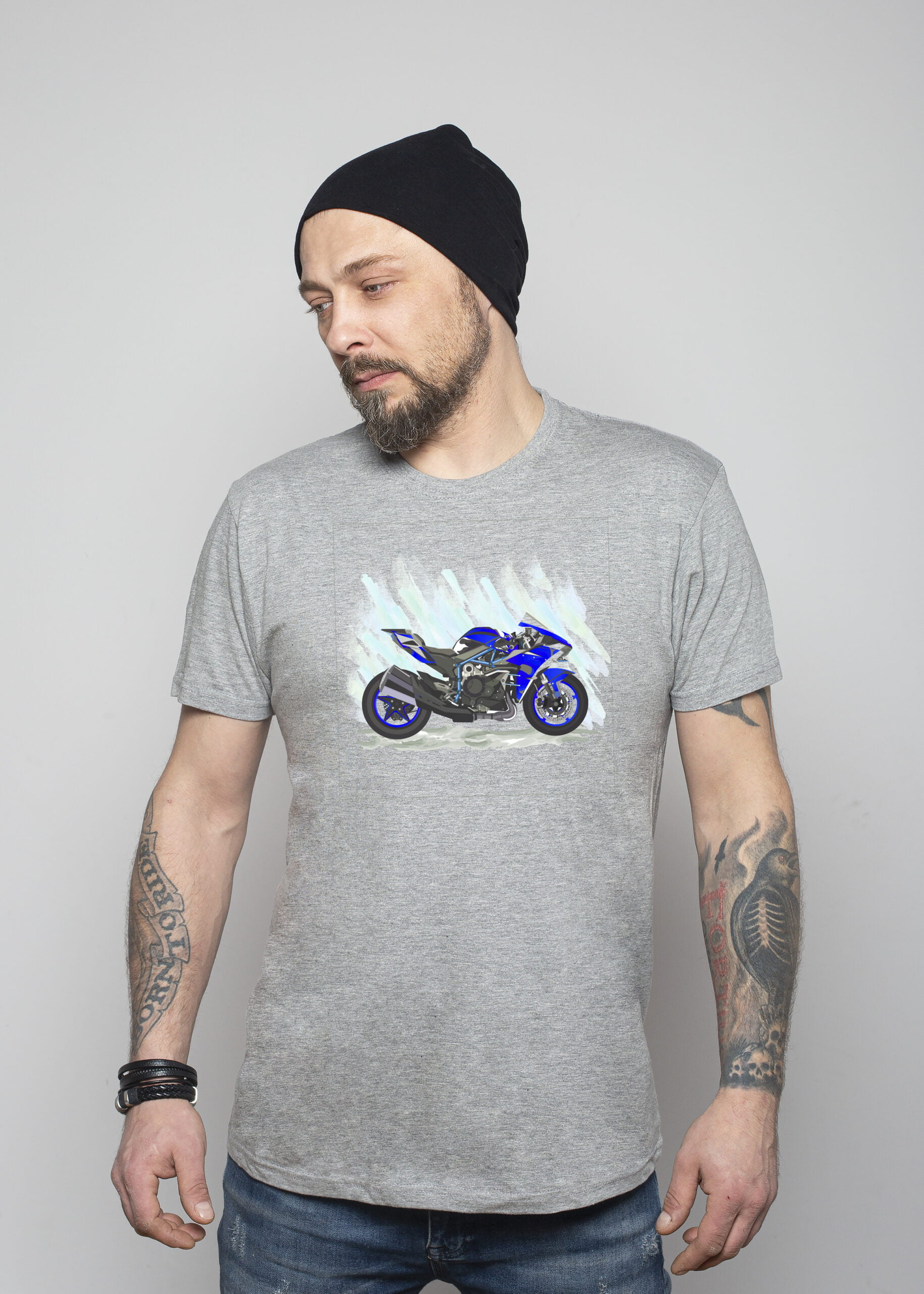 Koszulka Niebieski motocykl. T-shirt męski z krótkim rękawem.