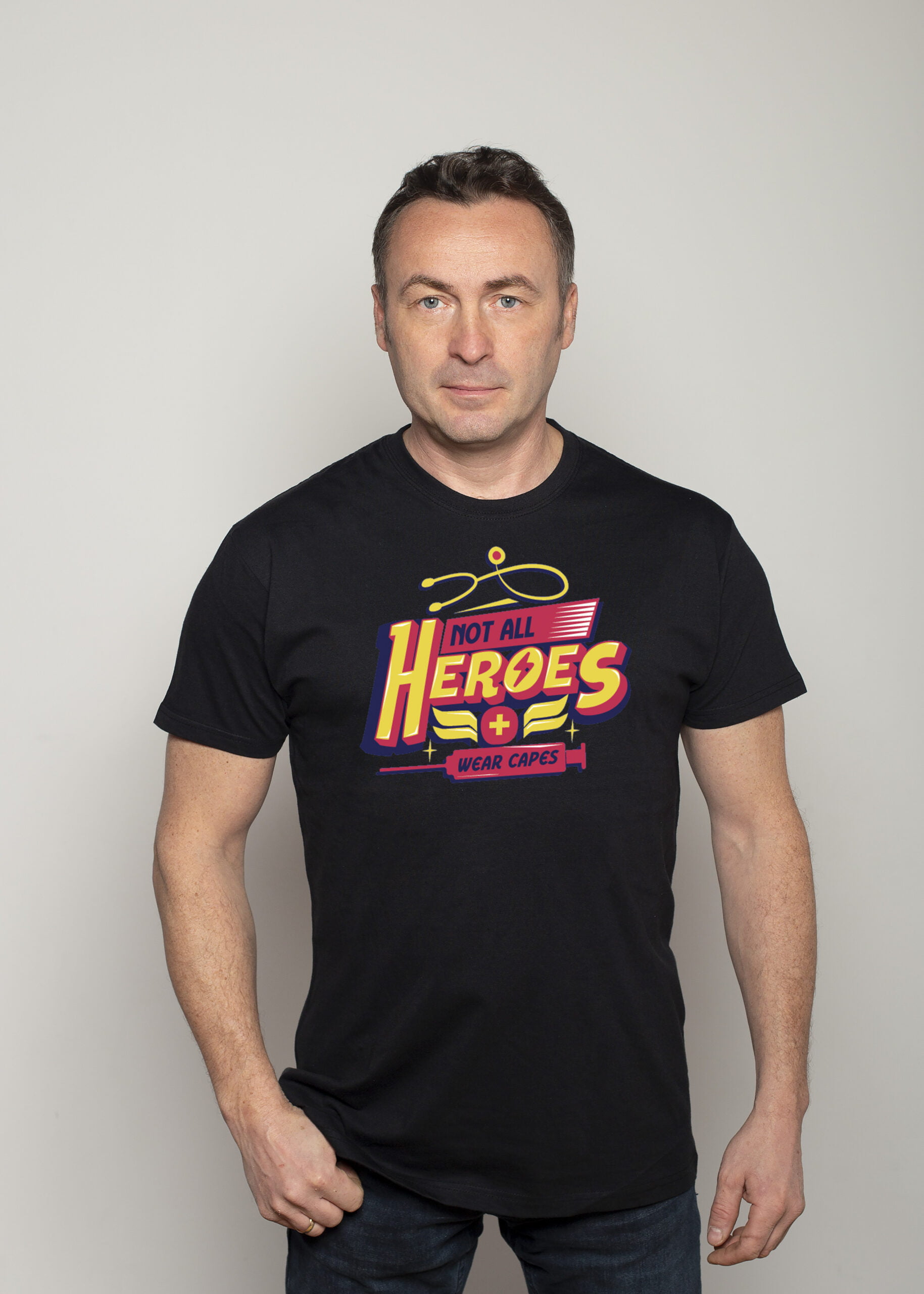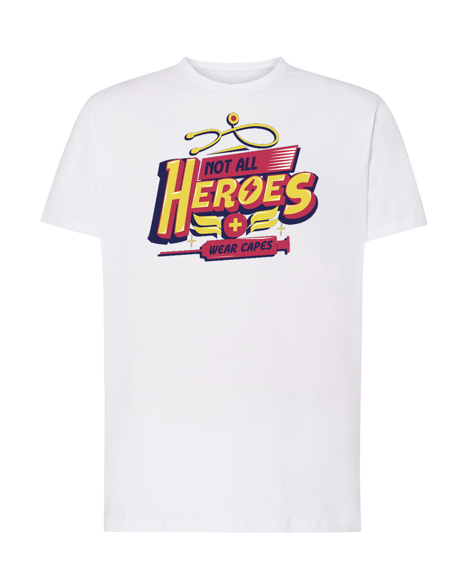 Koszulka Not all heroes. Koszulka oraz nadruk wykonane w najwyższej jakości. Dostępna w 3 klasycznych kolorach: białym, szarym i czarnym. Idealna na prezent.