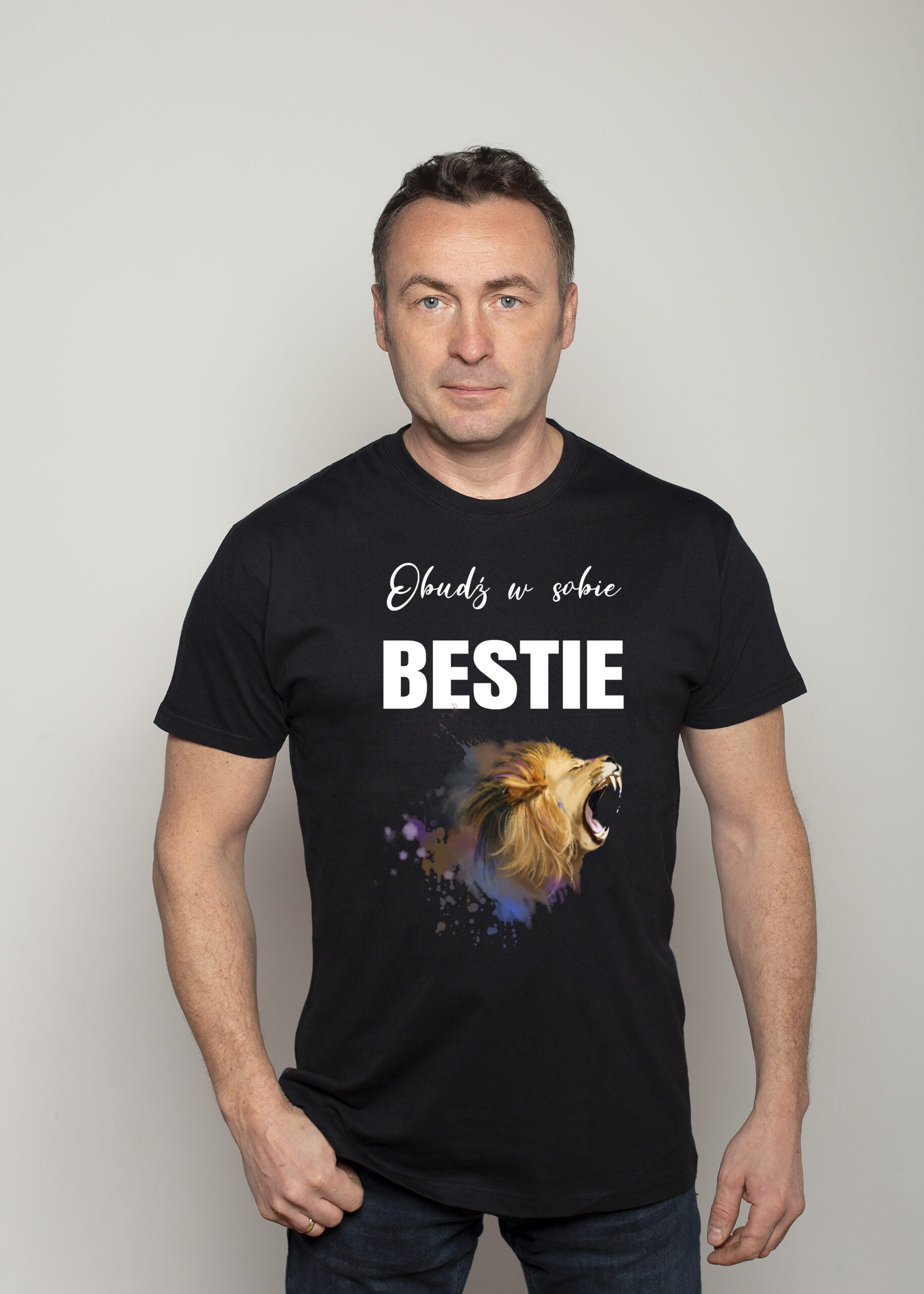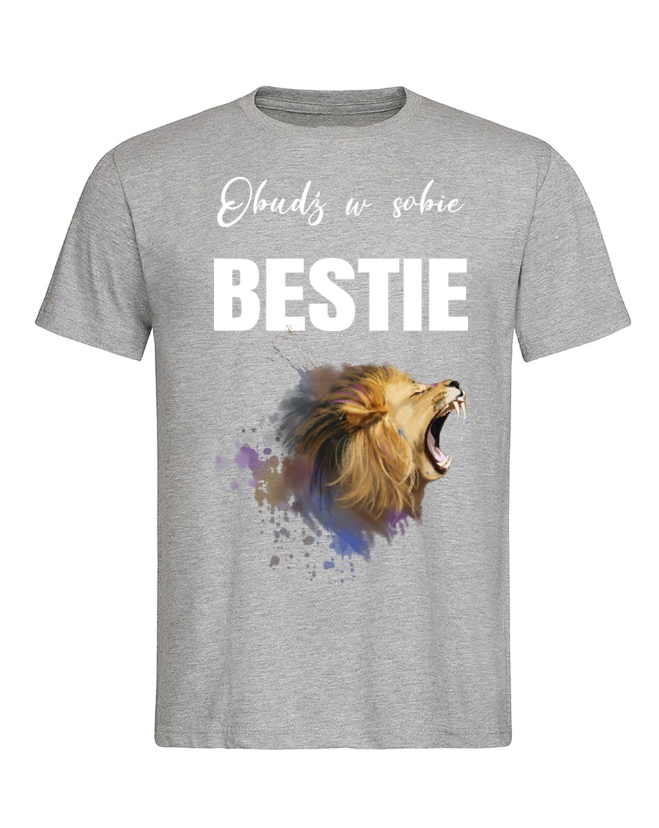 Koszulka Obudź w sobie bestię . Koszulka oraz nadruk wykonane w najwyższej jakości. Dostępna w 3 klasycznych kolorach: białym, szarym i czarnym. Idealna na prezent.