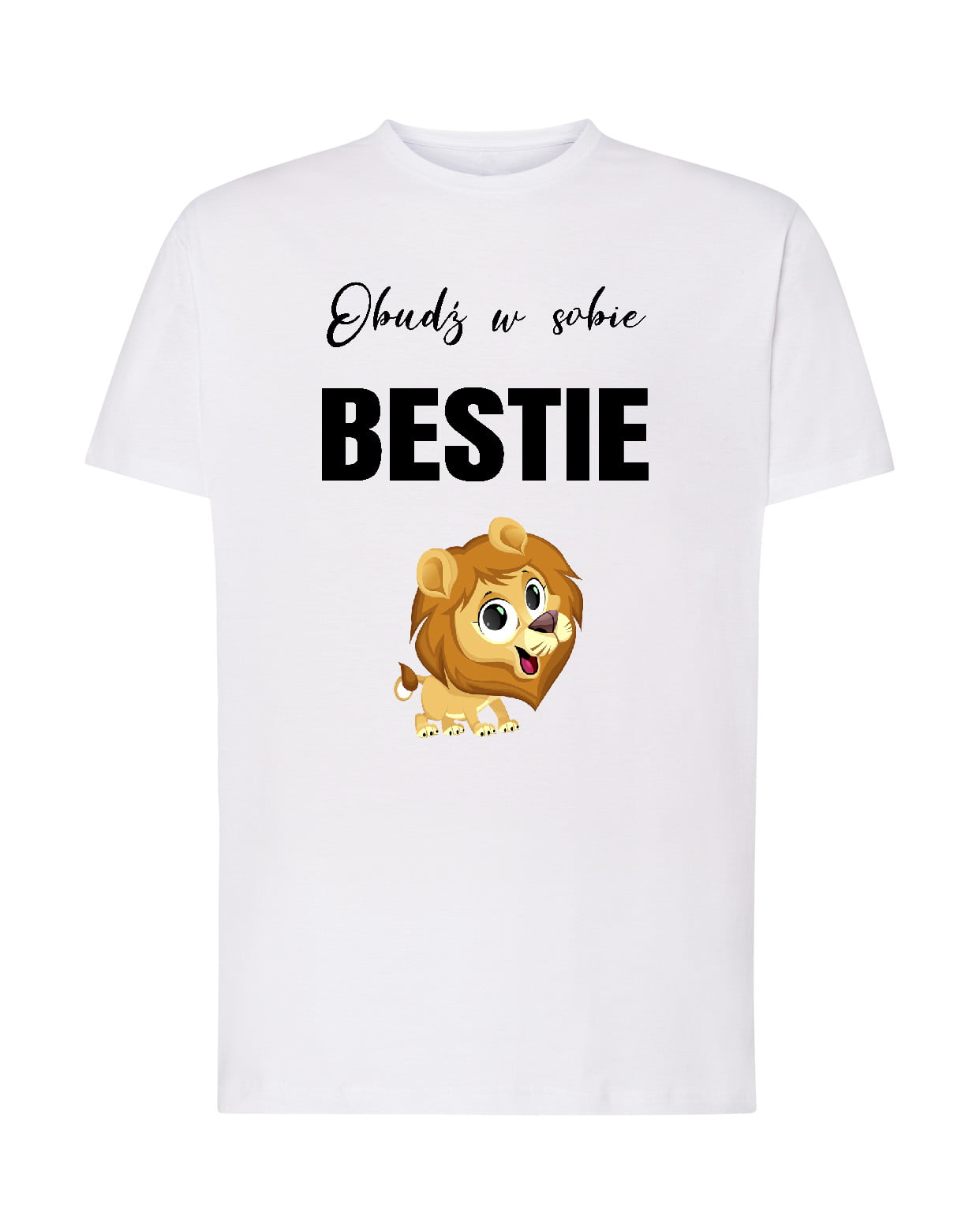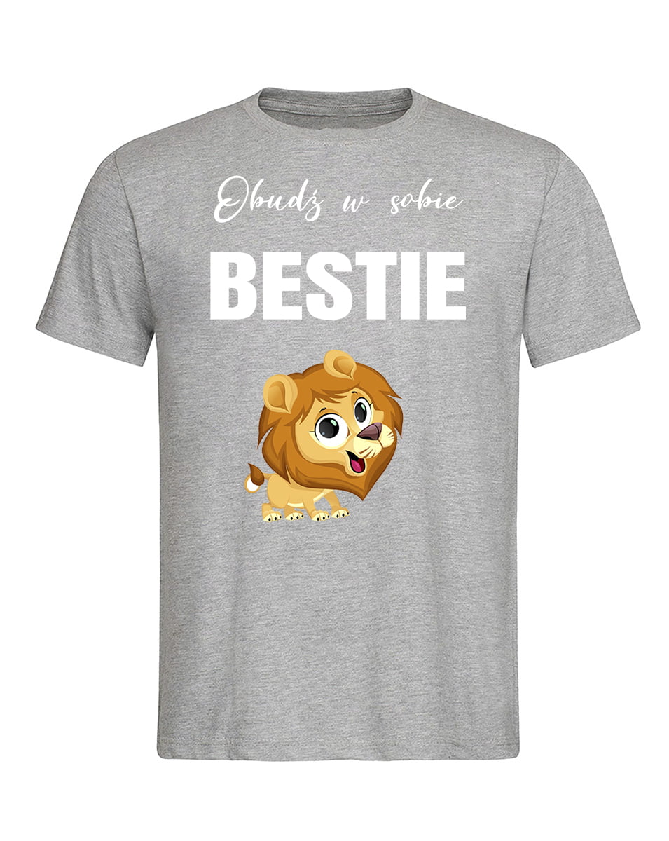 Koszulka Obudź w sobie bestię. Koszulka oraz nadruk wykonane w najwyższej jakości. Dostępna w 3 klasycznych kolorach: białym, szarym i czarnym. Idealna na prezent.