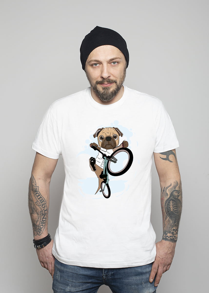 Koszulka pies na rowerze. T-shirt męski z krótkim rękawem.