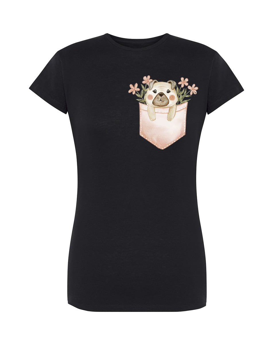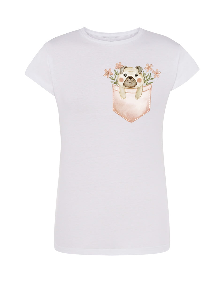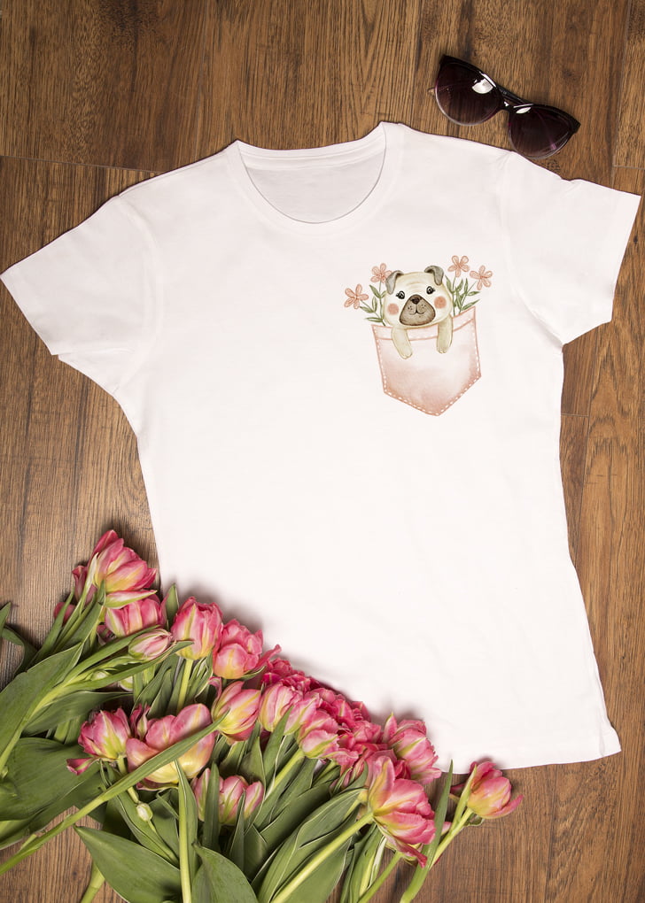 Koszulka piesek w kieszonce. Koszulka z motywem pieska w kieszonce. Idealna na prezent dla miłośniczek czworonogów . Koszulka oraz nadruk zostały wykonane w najwyższej jakości.