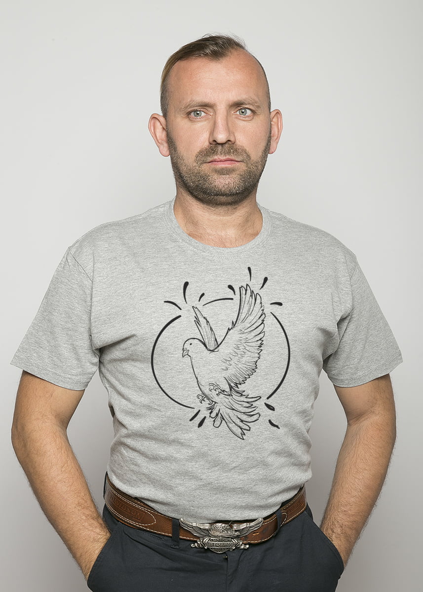 Koszulka Ptak. Koszulka oraz nadruk wykonane w najwyższej jakości. Dostępna w 3 klasycznych kolorach: białym, szarym i czarnym. Idealna na prezent.
