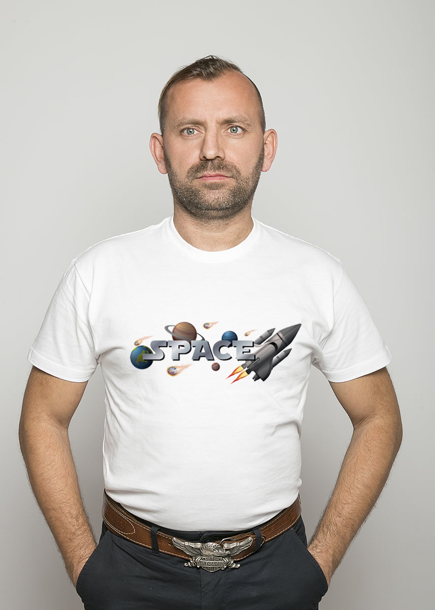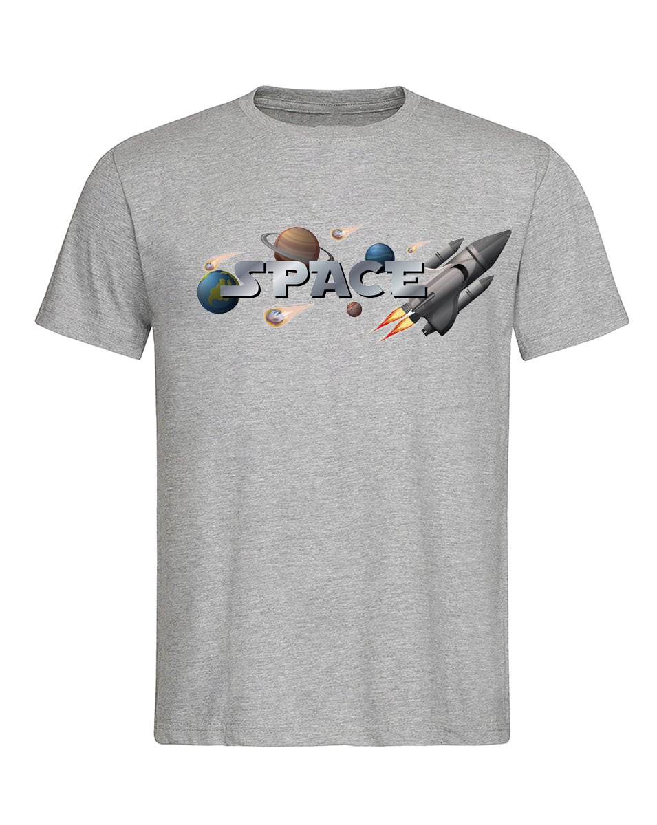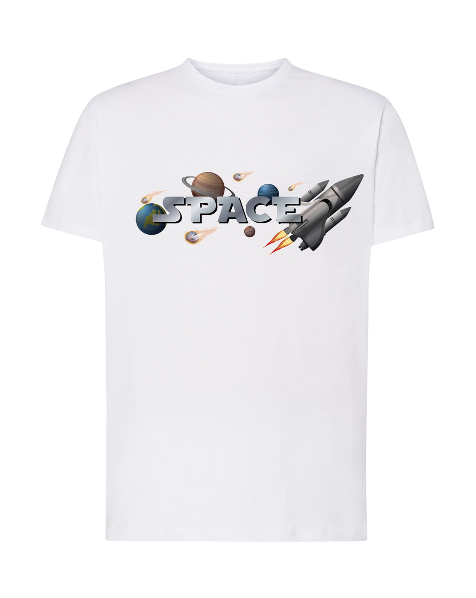 Koszulka Space. Koszulka oraz nadruk wykonane w najwyższej jakości. Dostępna w 3 klasycznych kolorach: białym, szarym i czarnym. Idealna na prezent.
