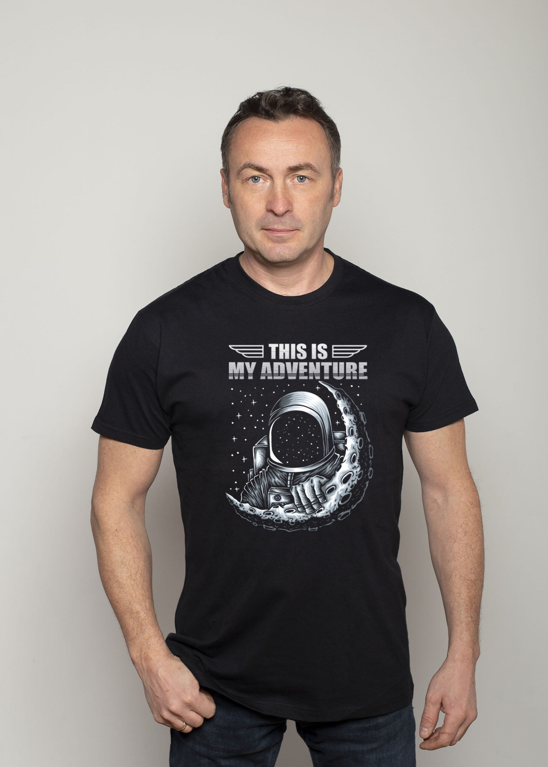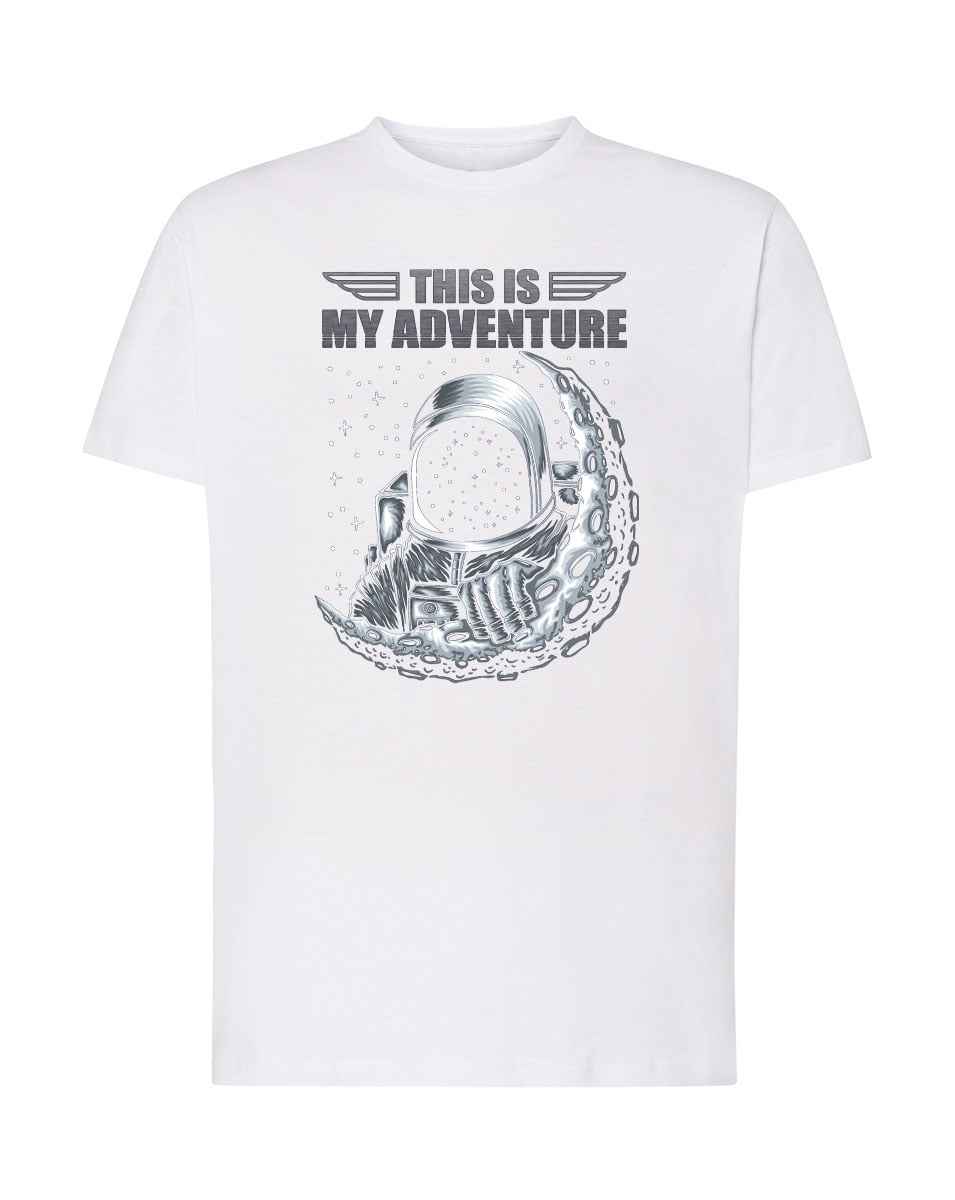 Koszulka This is my adventure. Koszulka oraz nadruk wykonane w najwyższej jakości. Dostępna w 3 klasycznych kolorach: białym, szarym i czarnym. Idealna na prezent.