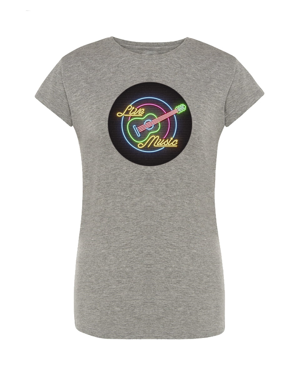 Live music. Koszulka oraz nadruk wykonane w najwyższej jakości. Dostępna w 3 klasycznych kolorach: białym, szarym i czarnym. Idealna na prezent. Spraw sobie damską koszulkę z napisem!