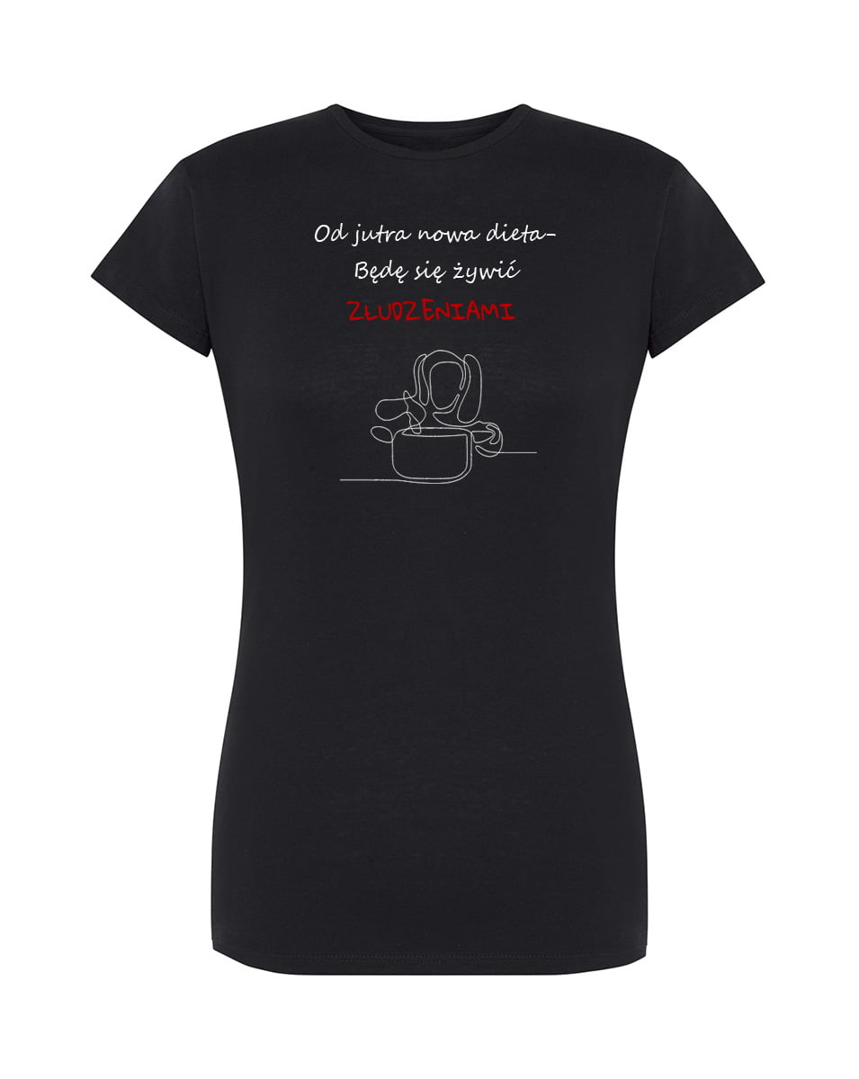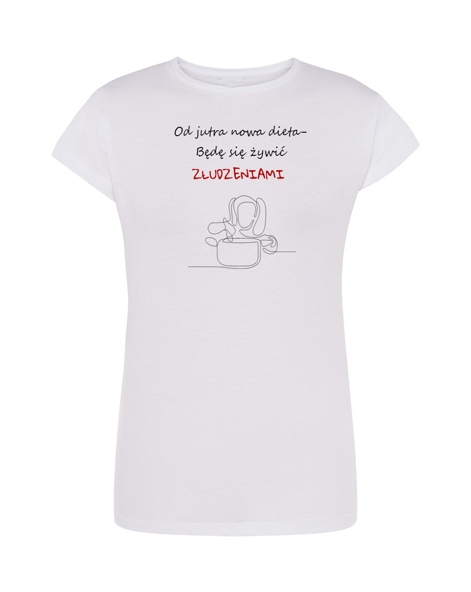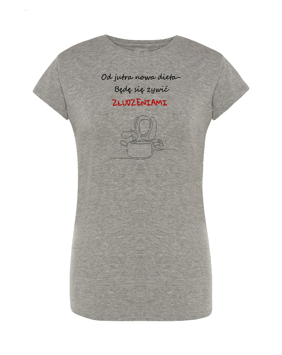 Koszulka nowa dieta. Koszulka oraz nadruk wykonane w najwyższej jakości. Dostępna w 3 klasycznych kolorach: białym, szarym i czarnym. Idealna na prezent. Spraw sobie damską koszulkę z napisem!