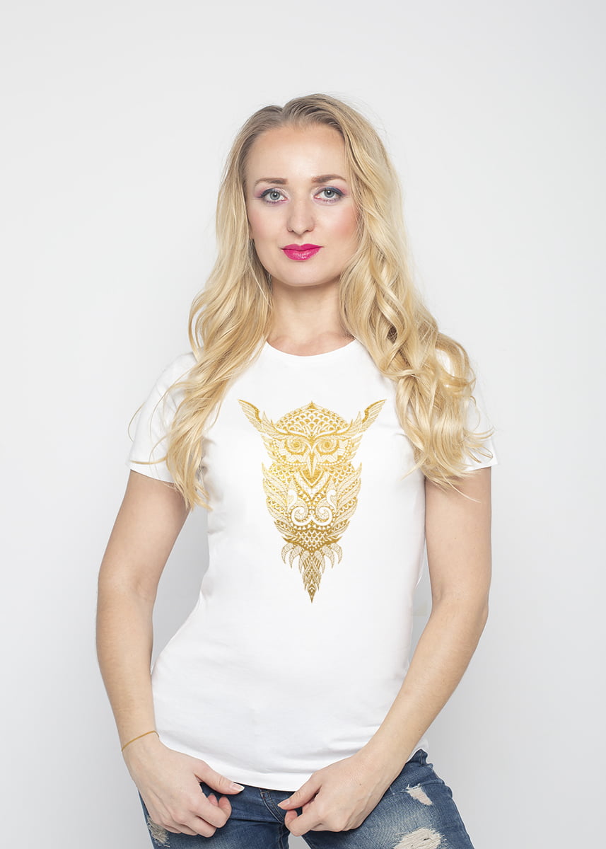 Koszulka Sowa. Koszulka oraz nadruk wykonane w najwyższej jakości. Dostępna w 3 klasycznych kolorach: białym, szarym i czarnym. Idealna na prezent. Spraw sobie damską koszulkę z napisem!