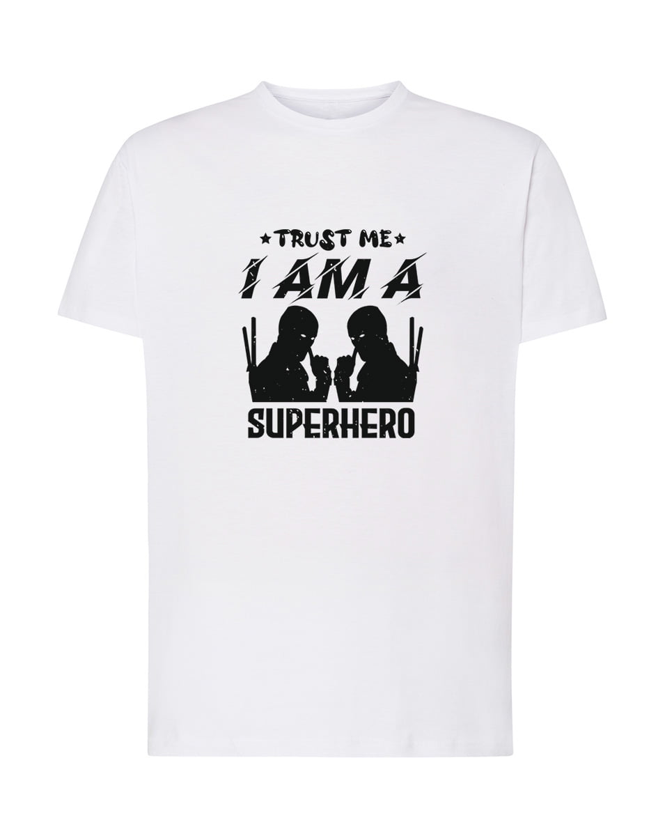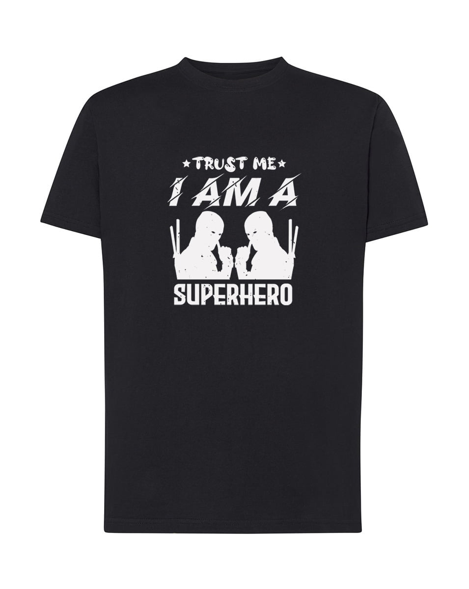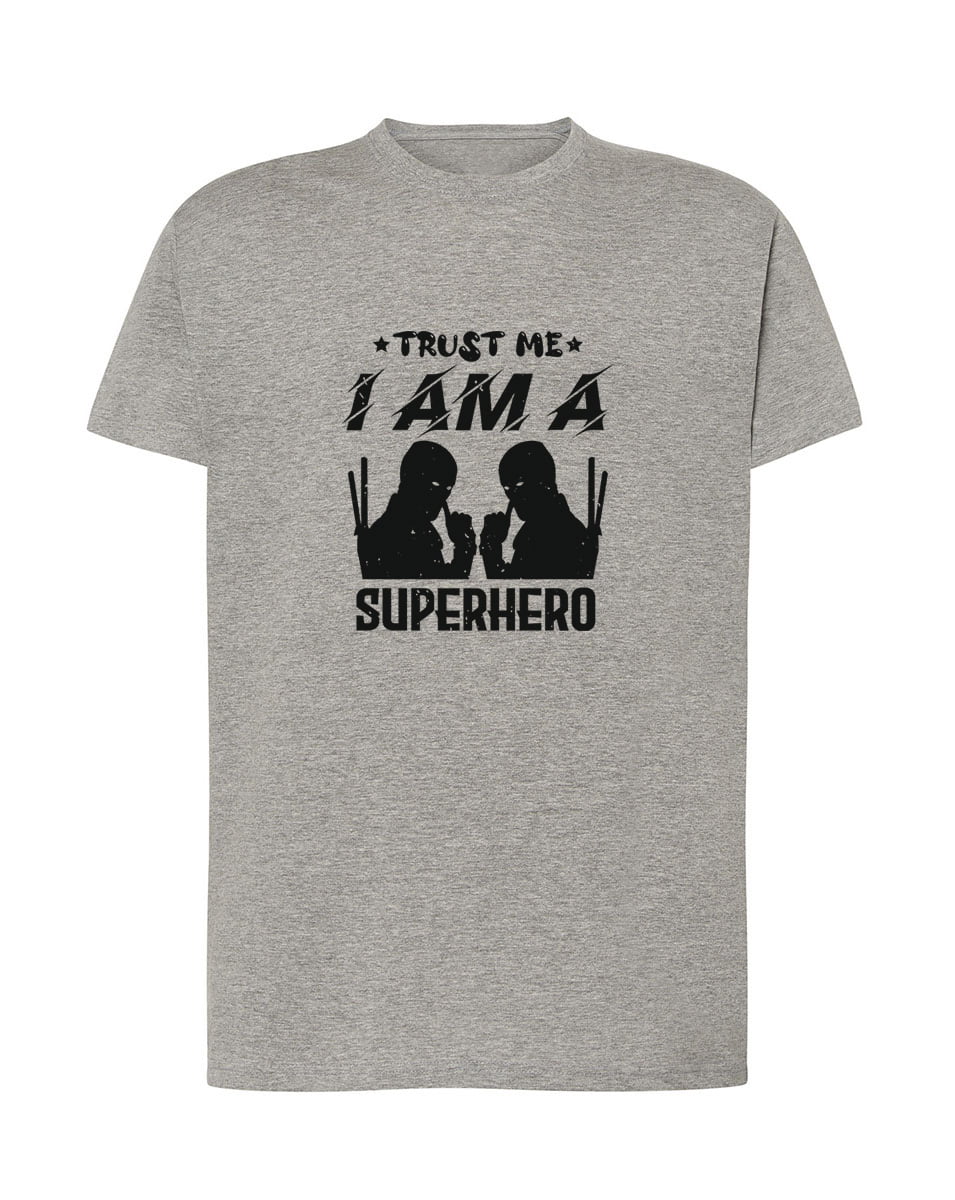 Trust me I am a superhero. Koszulka oraz nadruk wykonane w najwyższej jakości. Dostępna w 3 klasycznych kolorach: białym, szarym i czarnym. Idealna na prezent.