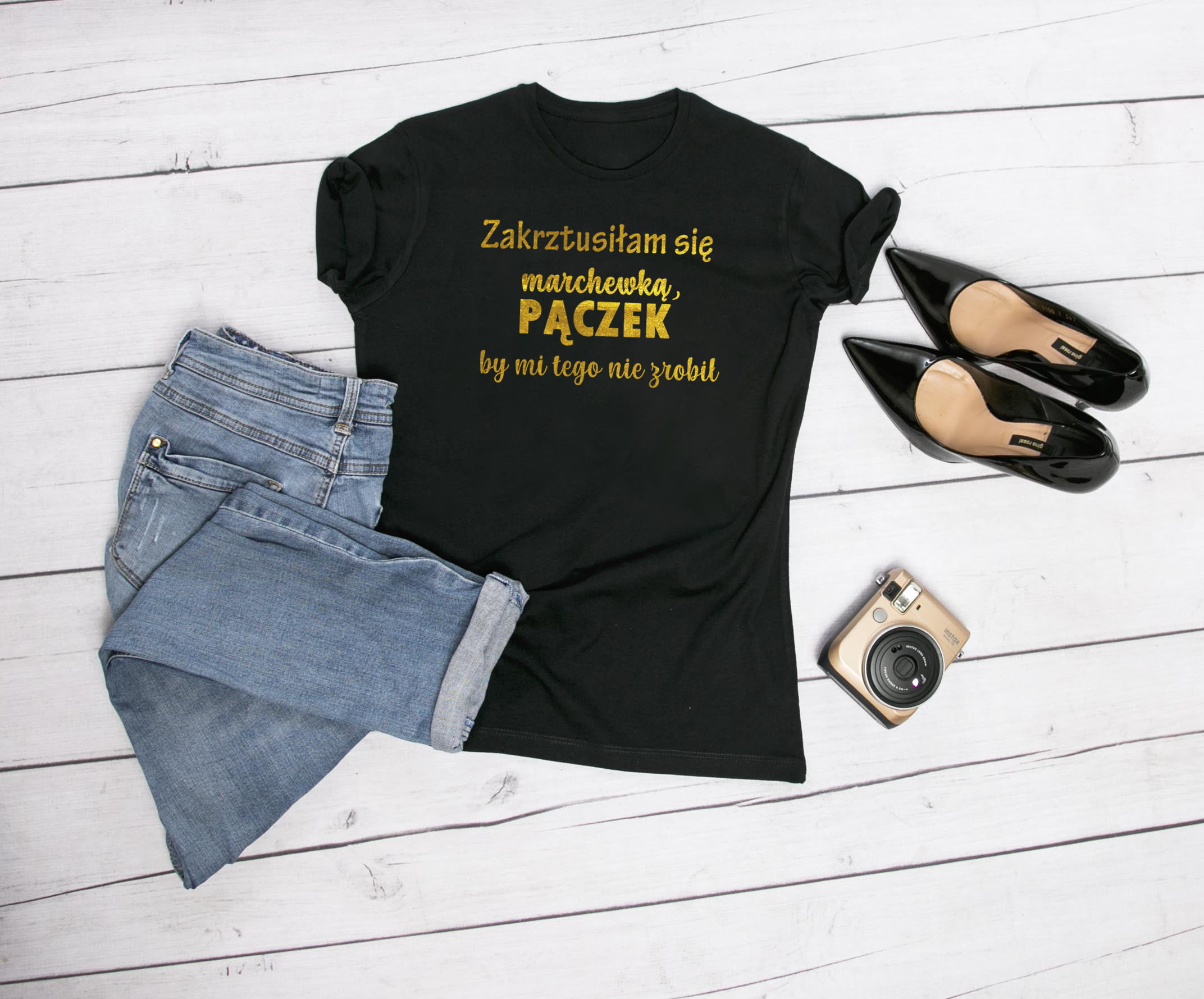 Zakrztusiłam się marchewką. Koszulka oraz nadruk wykonane w najwyższej jakości. Dostępna w 3 klasycznych kolorach: białym, szarym i czarnym. Idealna na prezent. Spraw sobie damską koszulkę z napisem!