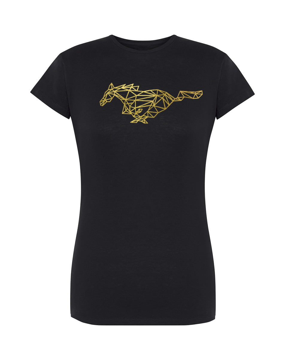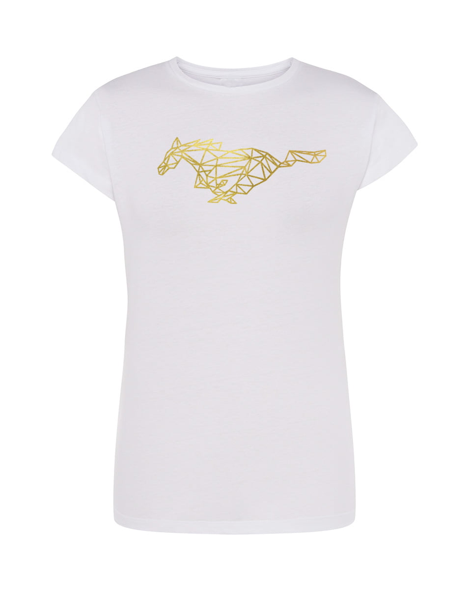 Złoty mustang. Koszulka oraz nadruk wykonane w najwyższej jakości. Dostępna w 3 klasycznych kolorach: białym, szarym i czarnym. Idealna na prezent. Spraw sobie damską koszulkę z napisem!